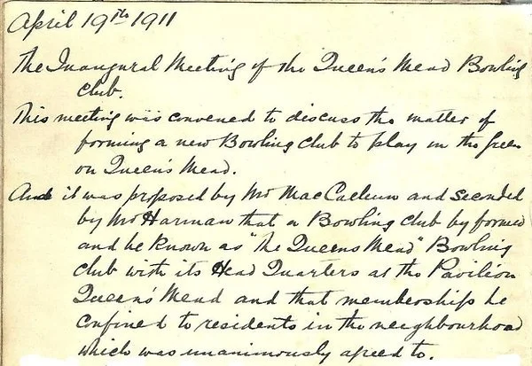 The Minute Recording the Formation of the Queen Mead Bowling Club